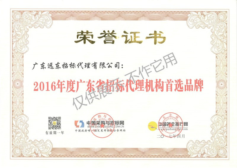 2016年度廣東省招標代理機構(gòu)首選品牌