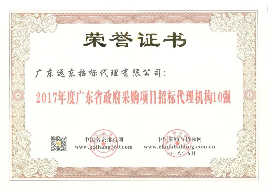 2017年廣東省政府采購項目招標代理機構(gòu)10強