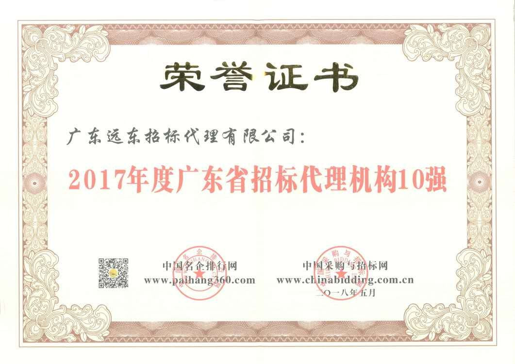 2017年廣東省政府采購項目招標代理機構(gòu)10強