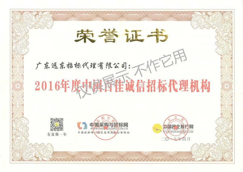 2016年度廣東省招標代理機構(gòu)首選品牌